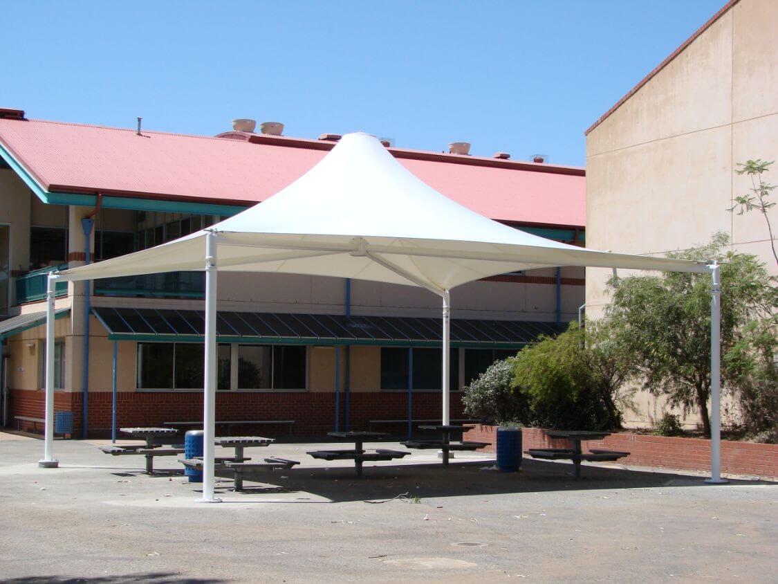 Shade Structures are often found in commercial or educational institutions because they can help to create a contemporary and artistic environment to enhance a learning experience. They are a low-maintenance permanent shade/weather solution, and are very popular with schools, resorts, retirement complexes, and universities.