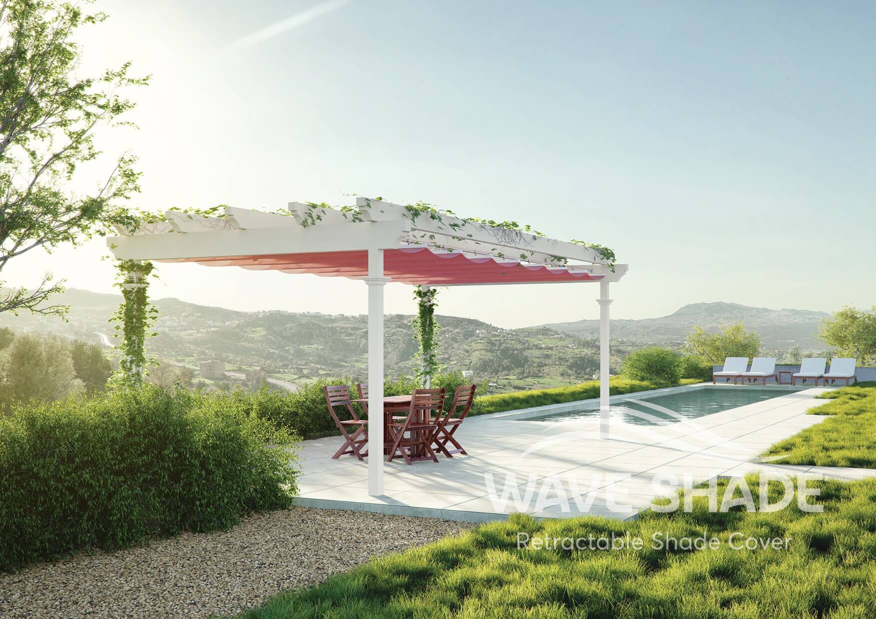 Fully customisable, the Wave Shade offers you the best of both worlds, sun when you want it and shade when you need it. The Wave Shade is made up of a series of billows which helps it retract and gives it an eloquent look. Each shade is custom-made to your outdoor space and can be attached to pergolas, homes, walls and poles.