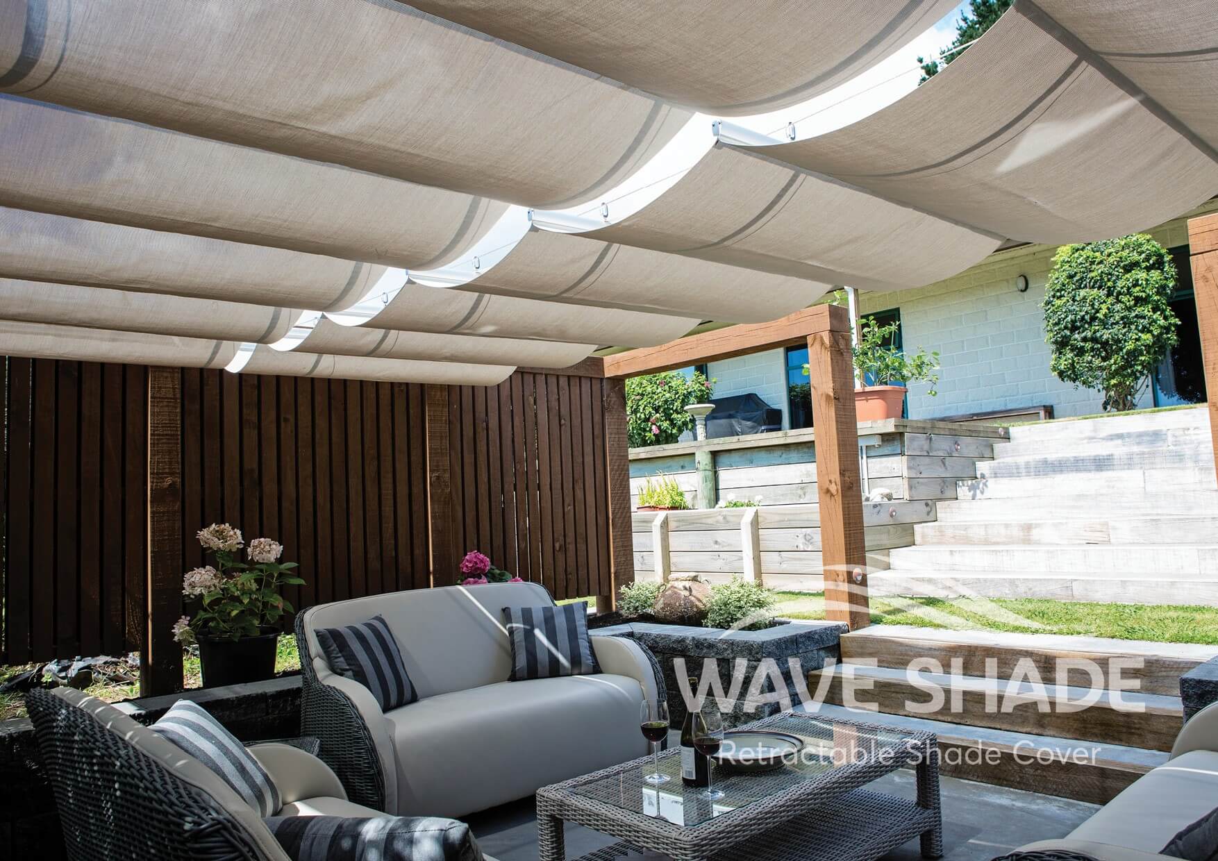 Similar to a shade sail, Wave Shade is a modern, retractable, and versatile shade sail. It gives you the flexibility to allow sun into an area whenever you want. Its billows or ‘waves’ can be in whatever width you need, and their number is dictated by the length of the area to be covered. While a Wave Shade adds a touch of elegance to an alfresco area at home, in a cafe or restaurant, it does not compromise on strength and durability. Wave Shades are custom designed to your exact specifications and come in an excellent range of colours